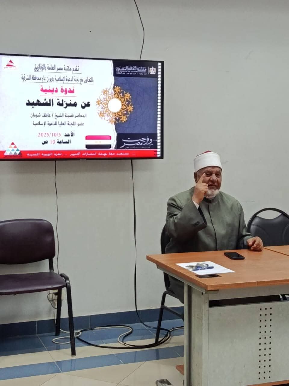 بالإضافة لتنظيم ندوة بعنوان "منزلة الشهيد " بالتنسيق مع لجنة الدعوة الإسلامية بديوان عام المحافظة .