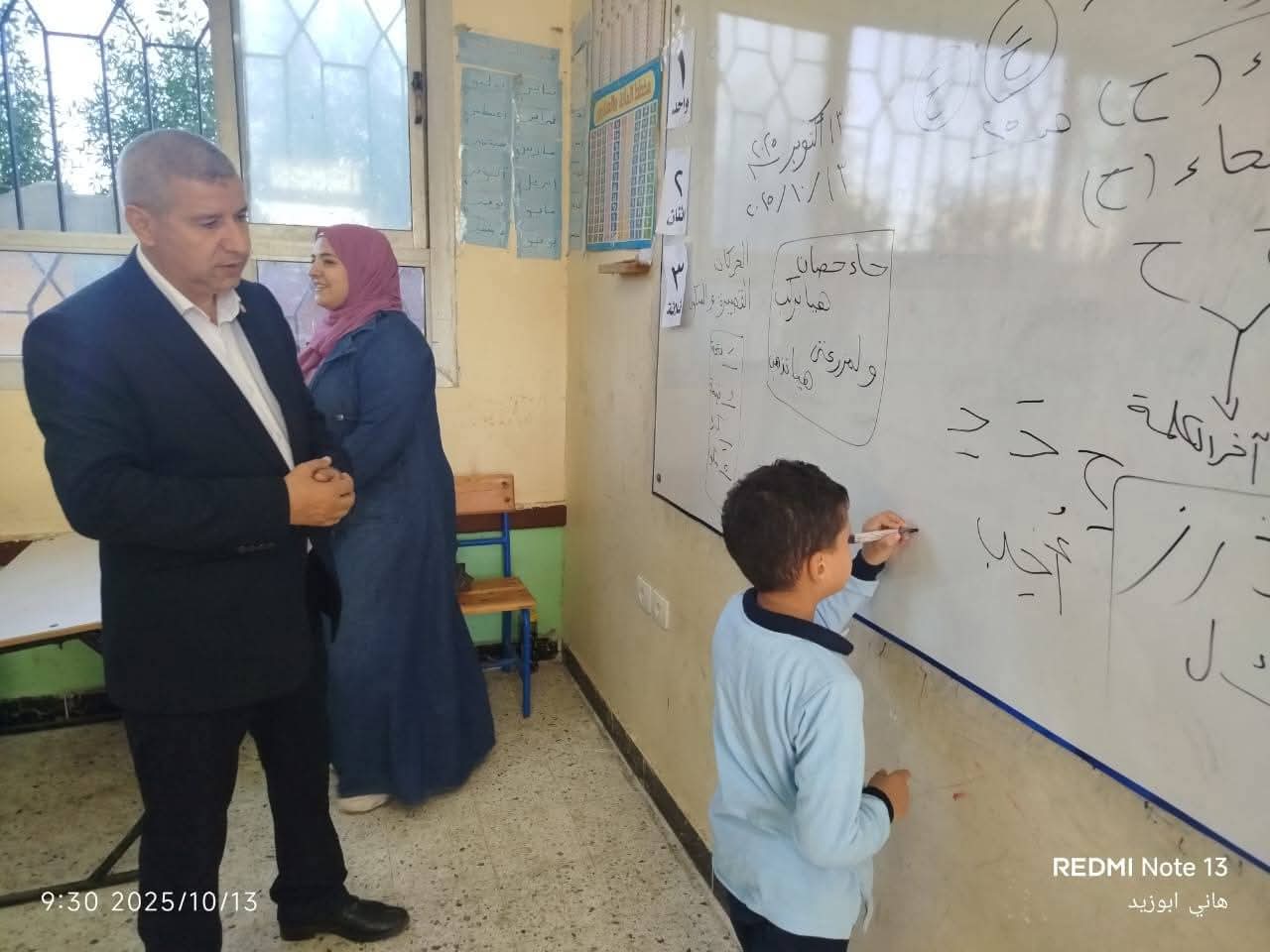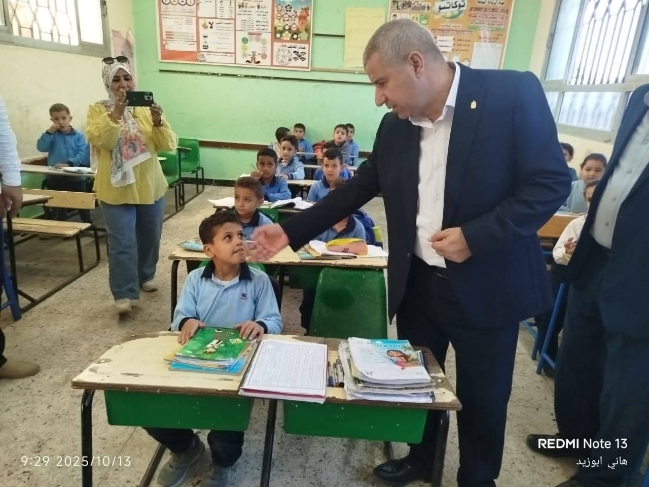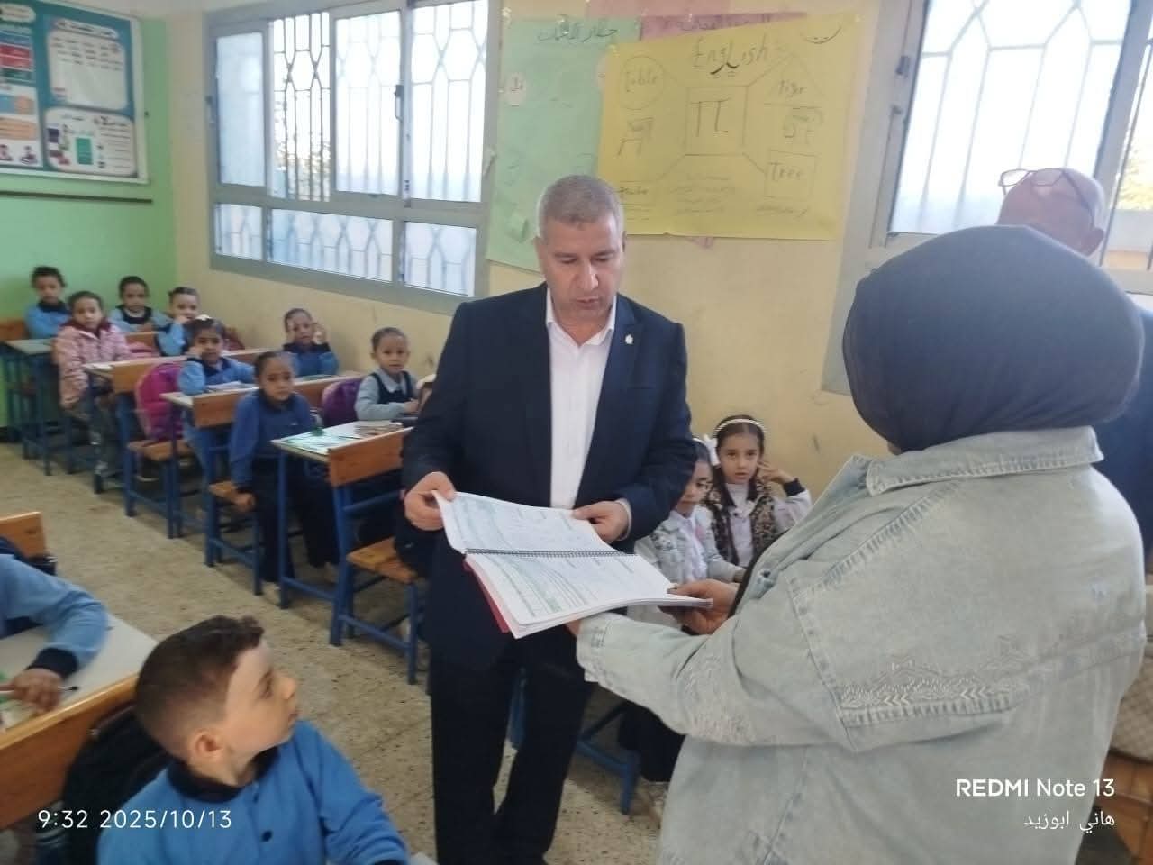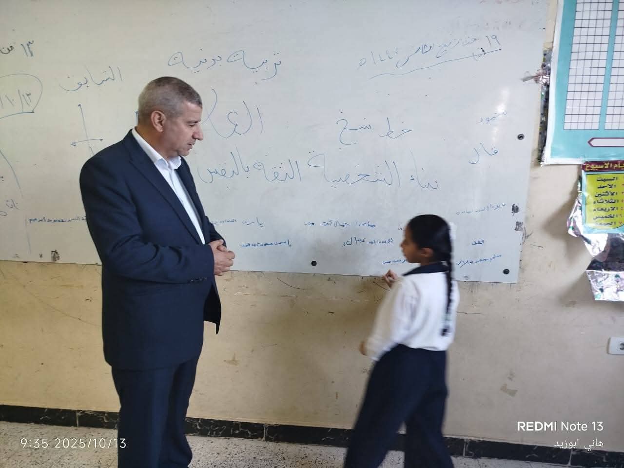 جاء ذلك للوقوف علي انتظام سير العملية التعليمية ويوجه بممارسة ساعة من البهجة والأنشطة الترفيهية والرياضية يوميا لرياض الاطفال بفناء المدرسة