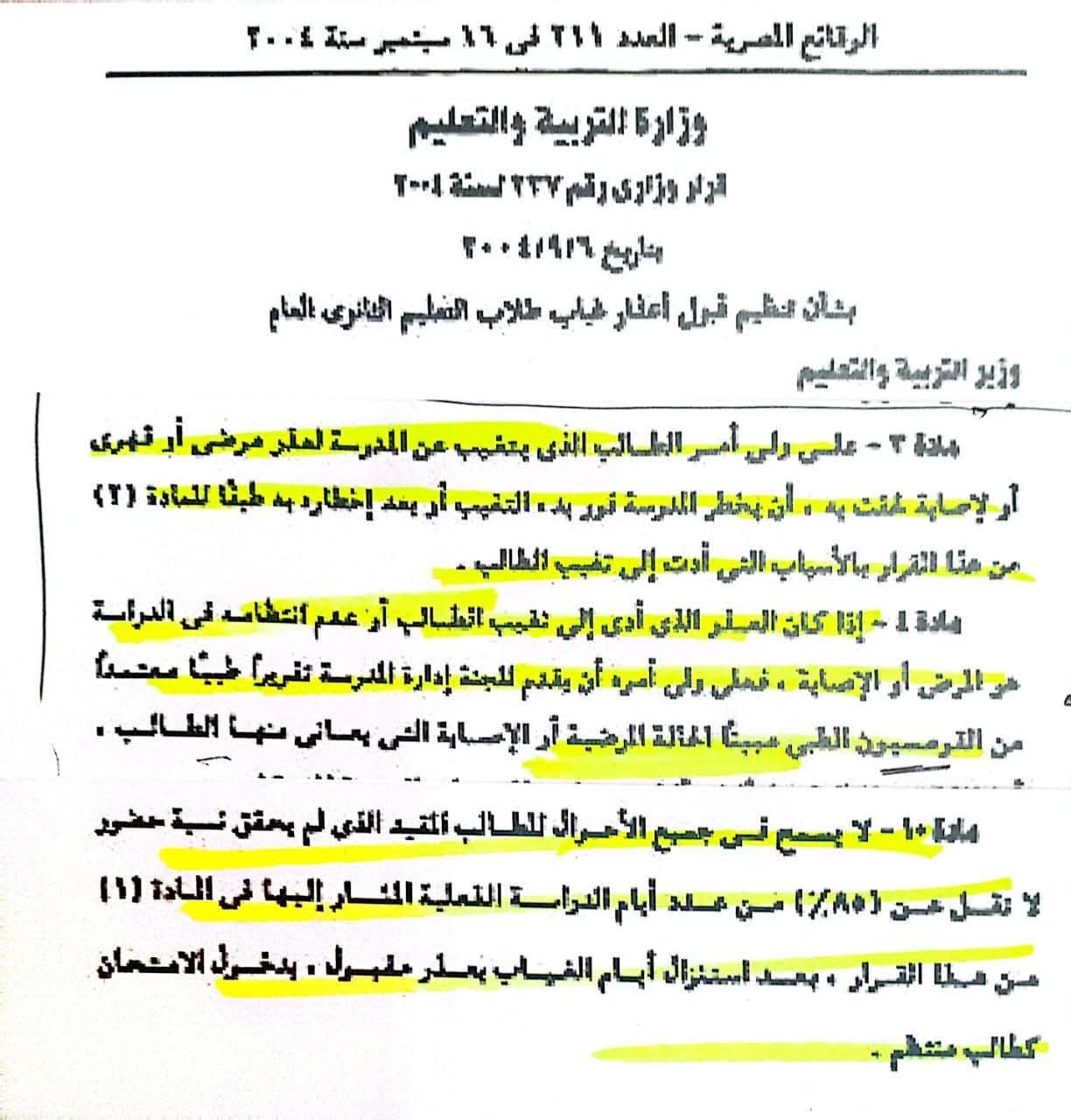 • استمرار وتفعيل العمل بالبرامج العلاجية للطلاب الضعاف طوال العام الدراسي فى ضوء المادة 22 من القرار الوزارى 313 والقرارات الوزارية المنظمة لذلك وفى فترة الاجازة،