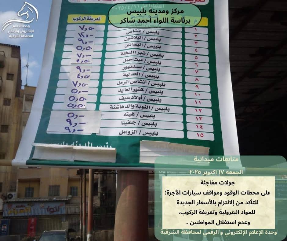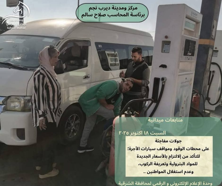 تابع المهندس/ حازم الأشموني #محافظ_الشرقية، مع رؤساء المراكز والمدن، انتظام سير العمل داخل مواقف سيارات الأجرة ومحطات الوقود ومستودعات الغاز والمخابز، للإطمئنان على الإلتزام بالأسعار المعلنة، عقب تحريك أسعار المواد البترولية صباح أمس.
