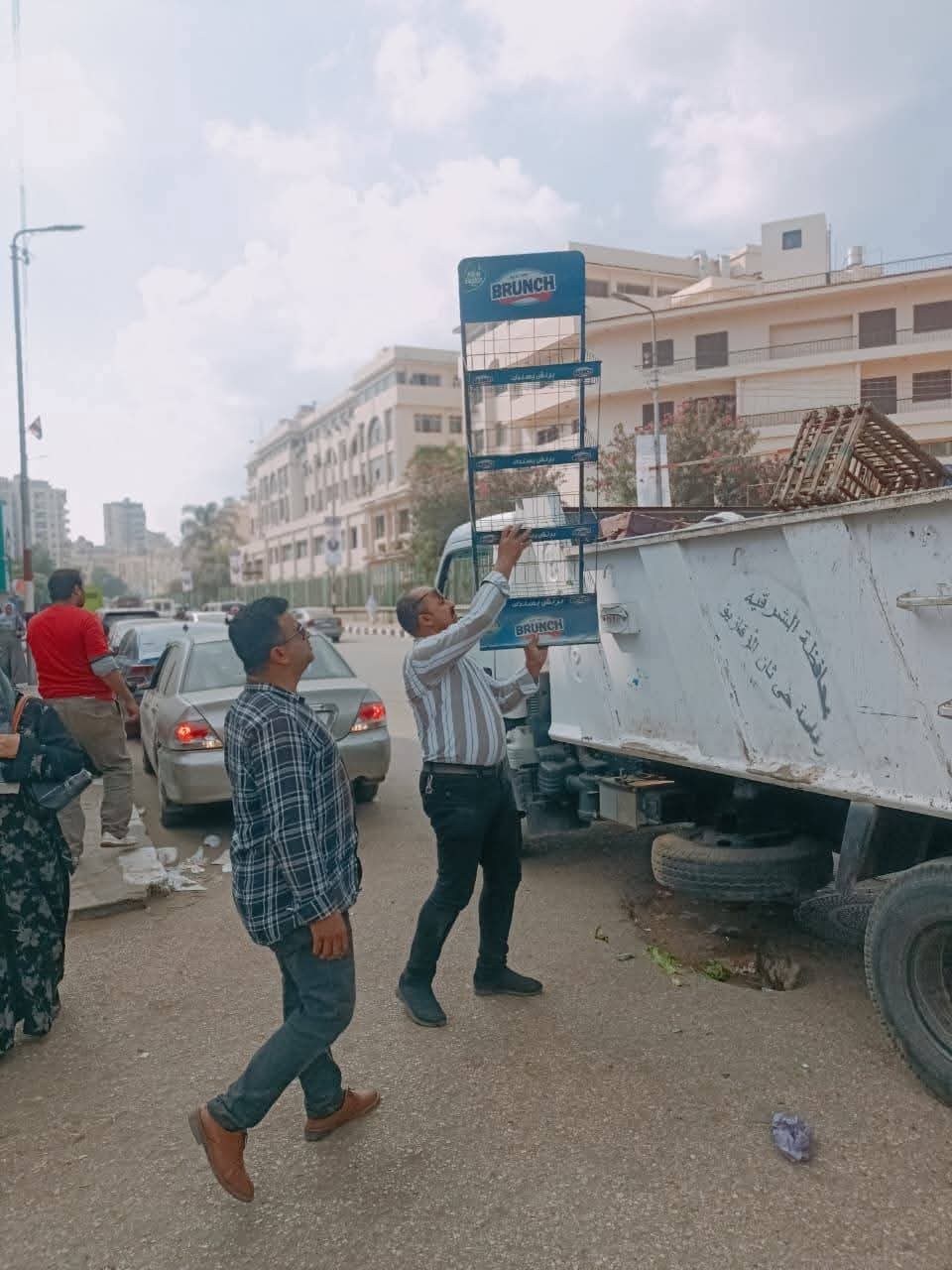 كفر_صقر: حملة مكبرة داخل المدينة لإزالة الإشغالات أمام المحال التجارية.