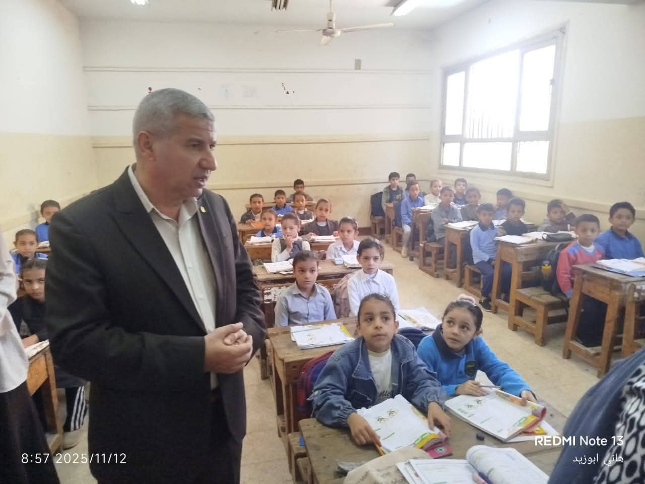 واطمئن سيادته علي استلام التلاميذ للكتب الدراسية وتحديث قوائم الفصول وتسجيلها إلكترونيا ثم تفقد سيادته فصول المدرسة لمتابعة سير العمل وانتظام الدراسة واطمئن علي التزام المعلمين بالتعليمات والقرارات الوزارية المنظمة لسير الدراسة ومتابعة موقف فك كثافات التلاميذ و الطلاب و متابعة العجز والزيادة في أعضاء هيئة التدريس و تطبيق القرارات المنظمة للتقييمات والواجبات المدرسية وكراسة الحصة