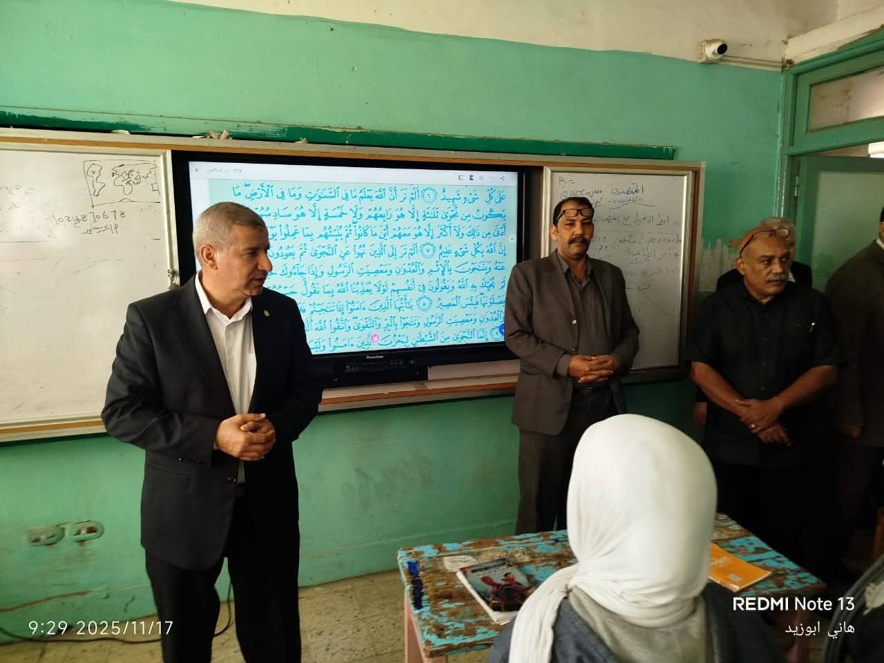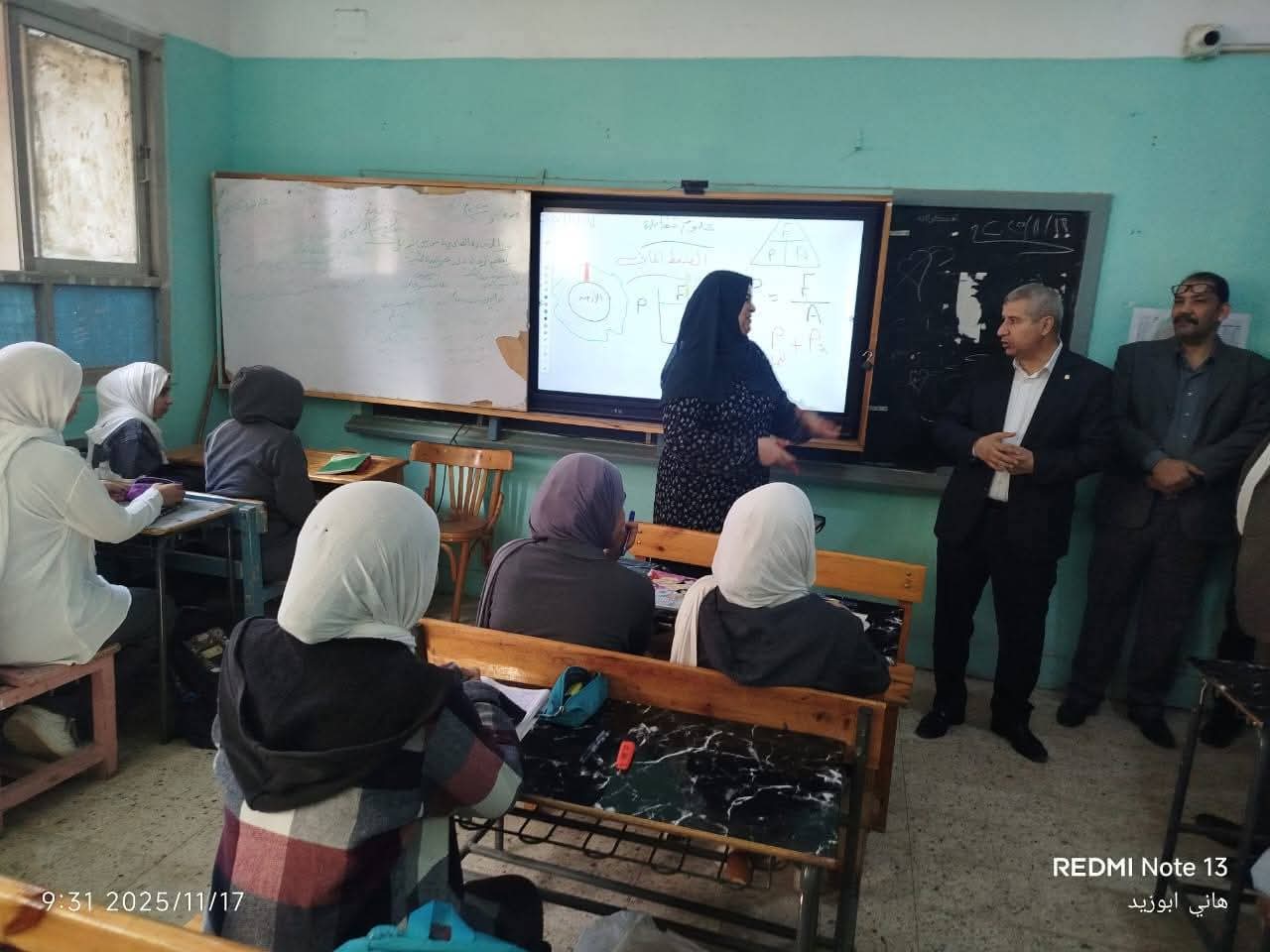 كما اطمئن علي انتظام الدراسة كذلك استخدام السبورات التفاعلية في شرح الدروس المقرره واستخدام الطلاب للتبلت