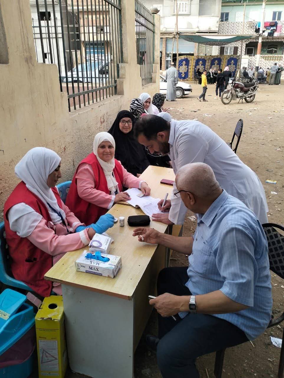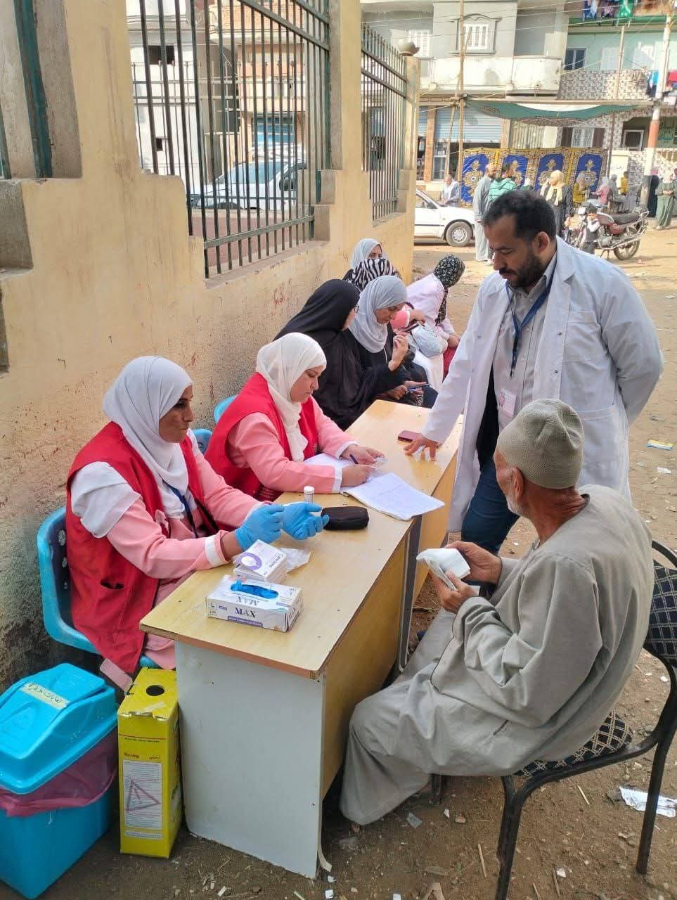 تواجد الفرق الطبية المشاركة في مبادرة " ١٠٠ مليون صحة " بالمقرات الإنتخابية وذلك لتقديم الفحوصات وعلاج الأمراض المزمنة " الضغط والسكر" والكشف المبكر عن الإعتلال الكلوي، ودعم صحة المرأة والكشف المبكر عن سرطان الثدي) .