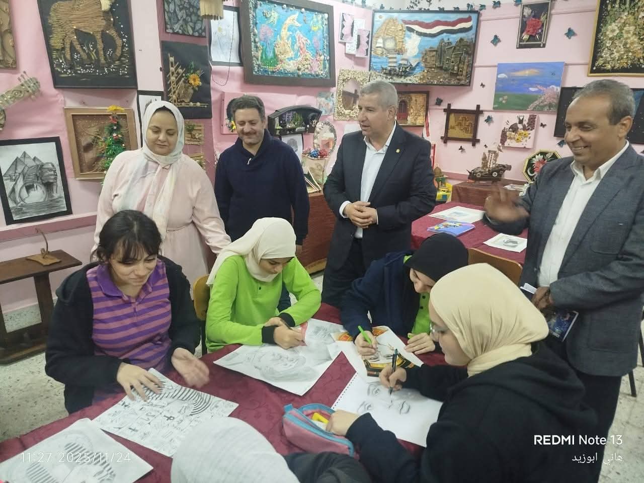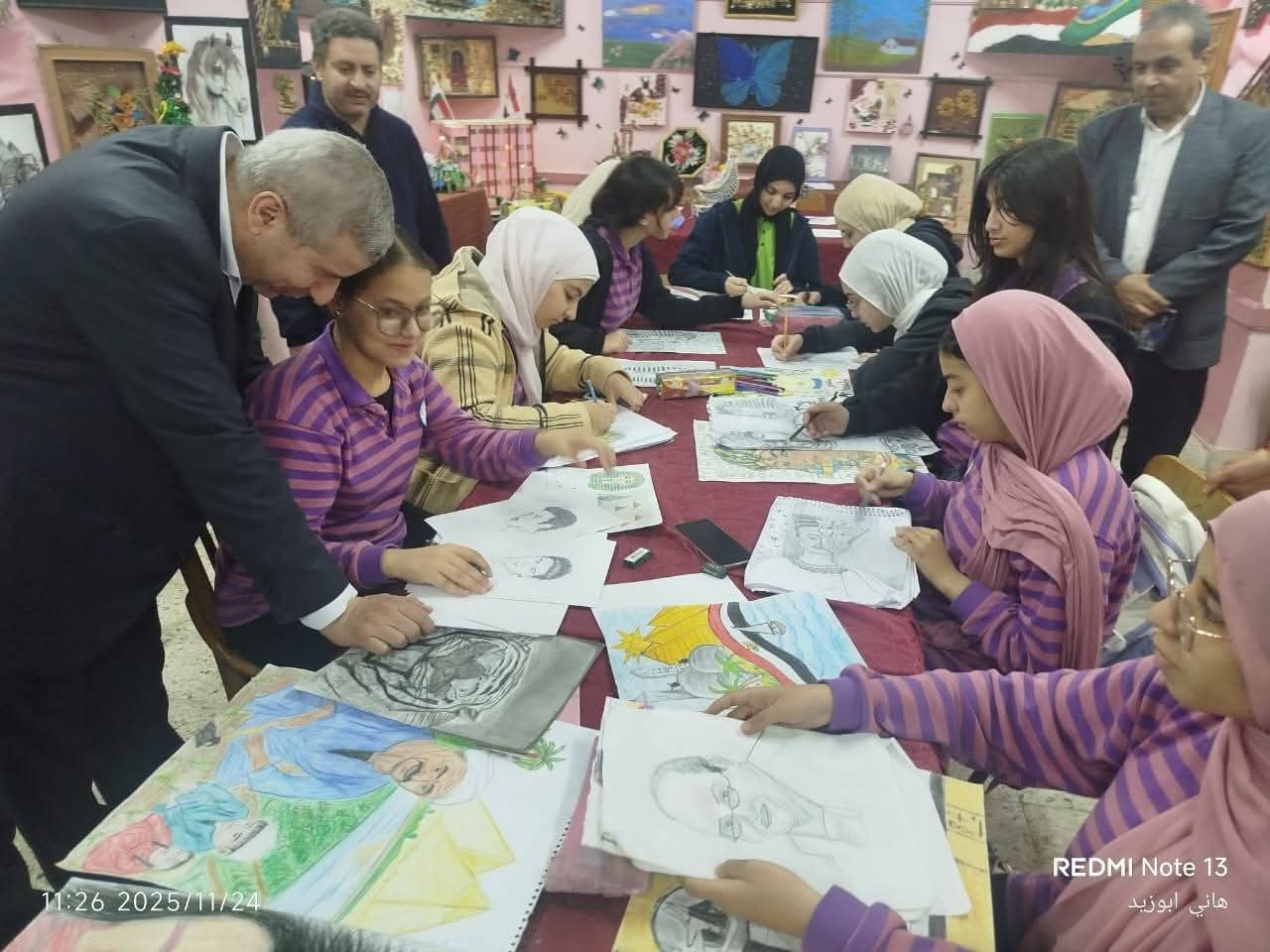 حيث شهد سيادته فعاليات ورش ممارسة الأنشطة التربوية المتنوعة في مجال الإعلام التربوي واشاد بمستوي الطالبات في مجال الإلقاء كذلك شهد سيادته ممارسة ورش التربية الفنية واشاد باعمال الطالبات كما تفقد سيادته ممارسة الانشطة الرياضية