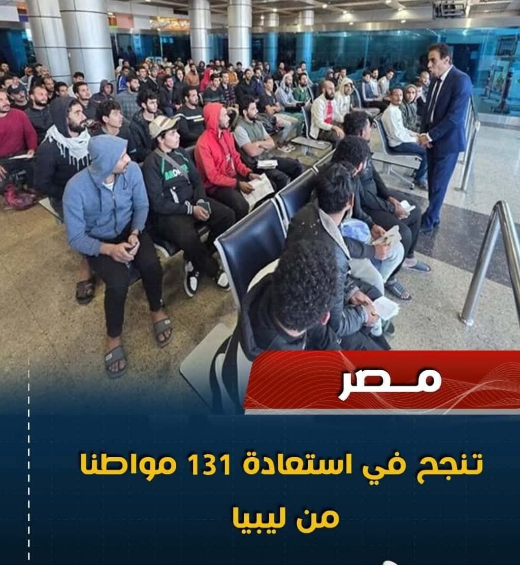 نجحت مصر في استعادة 131 مواطنًا من ليبيا وذلك في أعقاب جهود حثيثة ومتواصلة بذلتها السفارة المصرية في طرابلس بالتنسيق مع الجهات الليبية المختصة لتأمين إطلاق سراحهم وتسهيل عودتهم إلى أرض الوطن