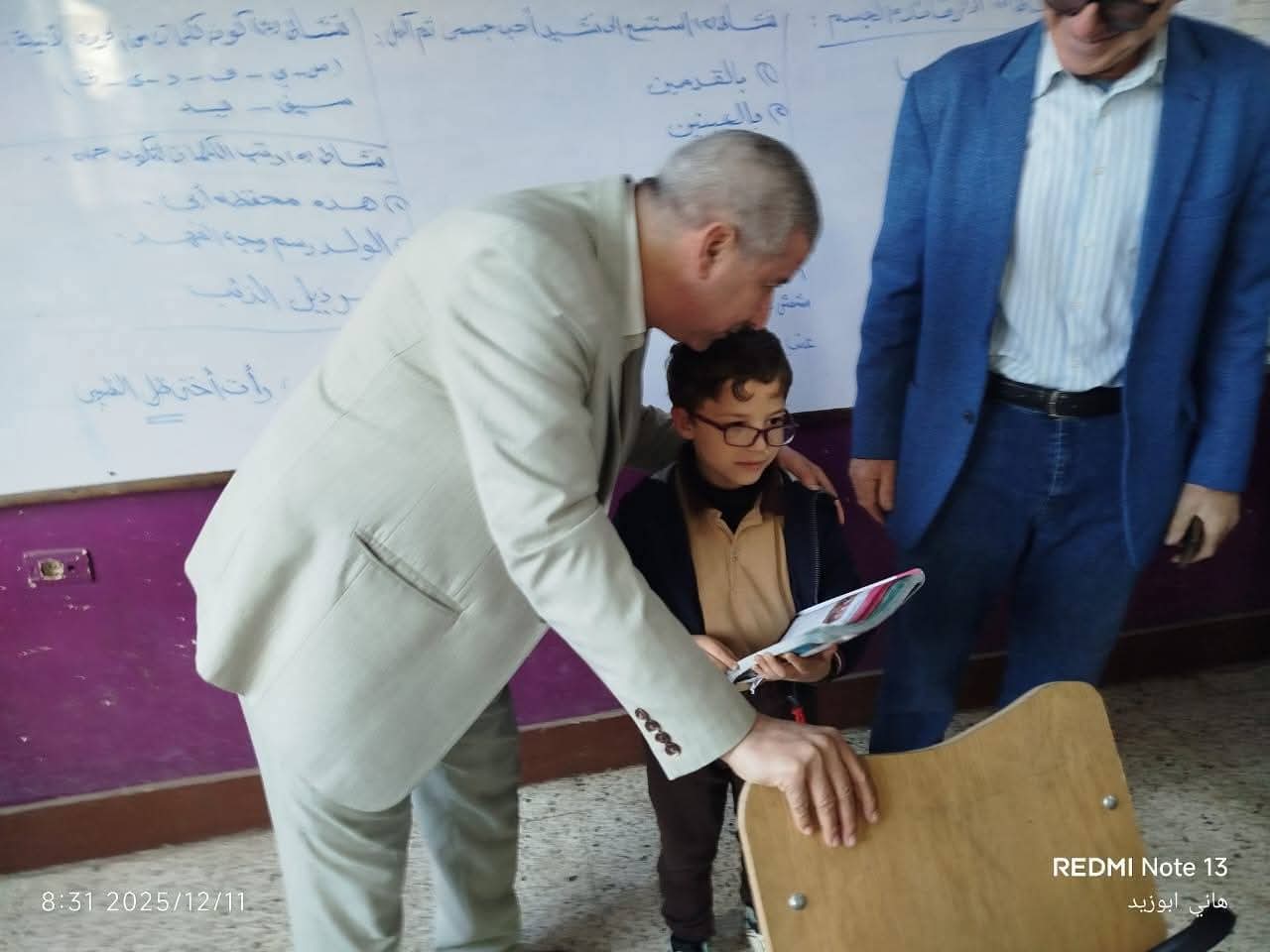 وحرص وكيل اول الوزارة علي مناقشة واختبار التلاميذ فيما تم دراسته من المناهج الدراسية ووجه بعمل برامج علاجية للتلاميذ المتأخرين دراسيا