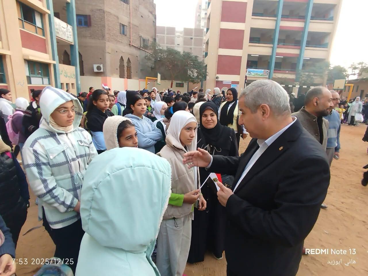 حيث قام سيادتة بمتابعة مدرسة عبد اللطيف حسانين للتعليم الاساسي ويشارك الطلاب طابور الصباح وتأدية تحية العلم ويٌشيد بممارسة ورش الانشطة الرياضية والتربوية ويوجه بتشجيع الطلاب الموهوبين رياضيا علي المشاركة في فعاليات الانتقاء لقبول لاعبين جدد برياضات المشروع القومي للموهبة والبطل الاولمبي