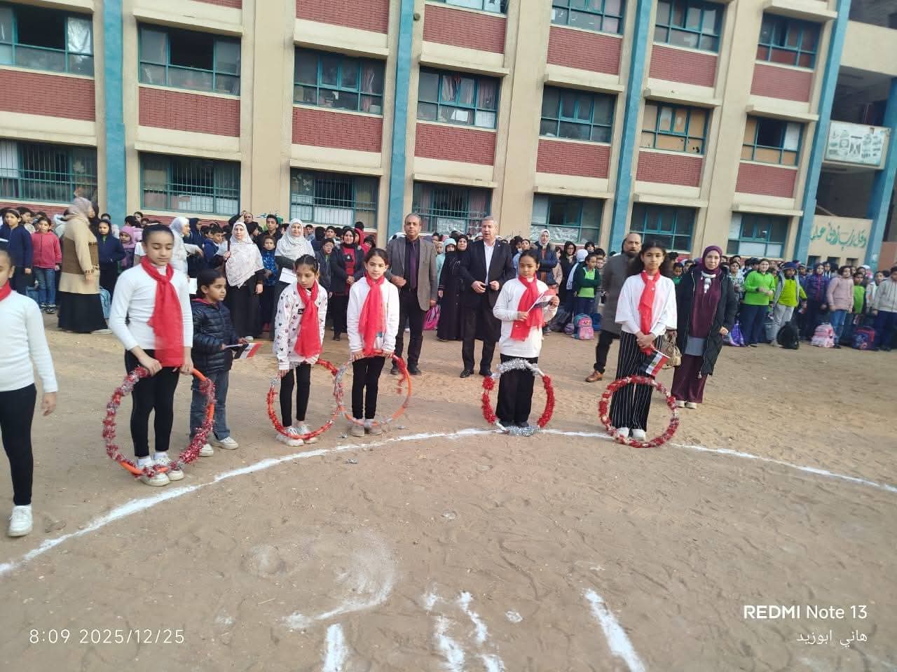 حيث شهد سيادته طابور الصباح وادي تحية العلم واستمع الي فقرات البرنامج الإذاعي وشهد ممارسة الانشطة الرياضية لطلاب المدرسة كذلك الانشطة الرياضية لمرحلة رياض الاطفال