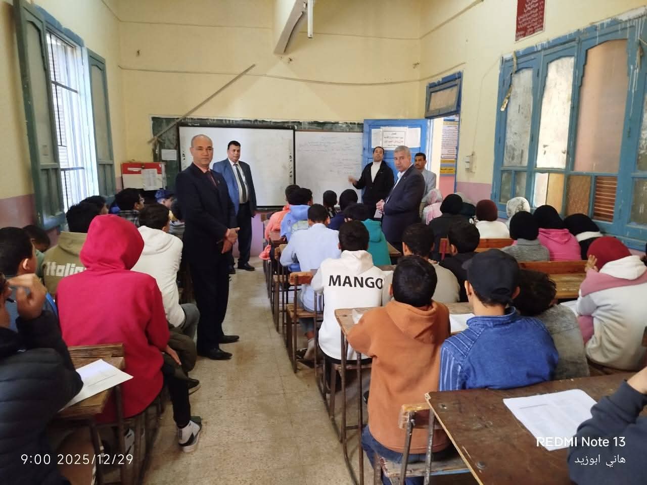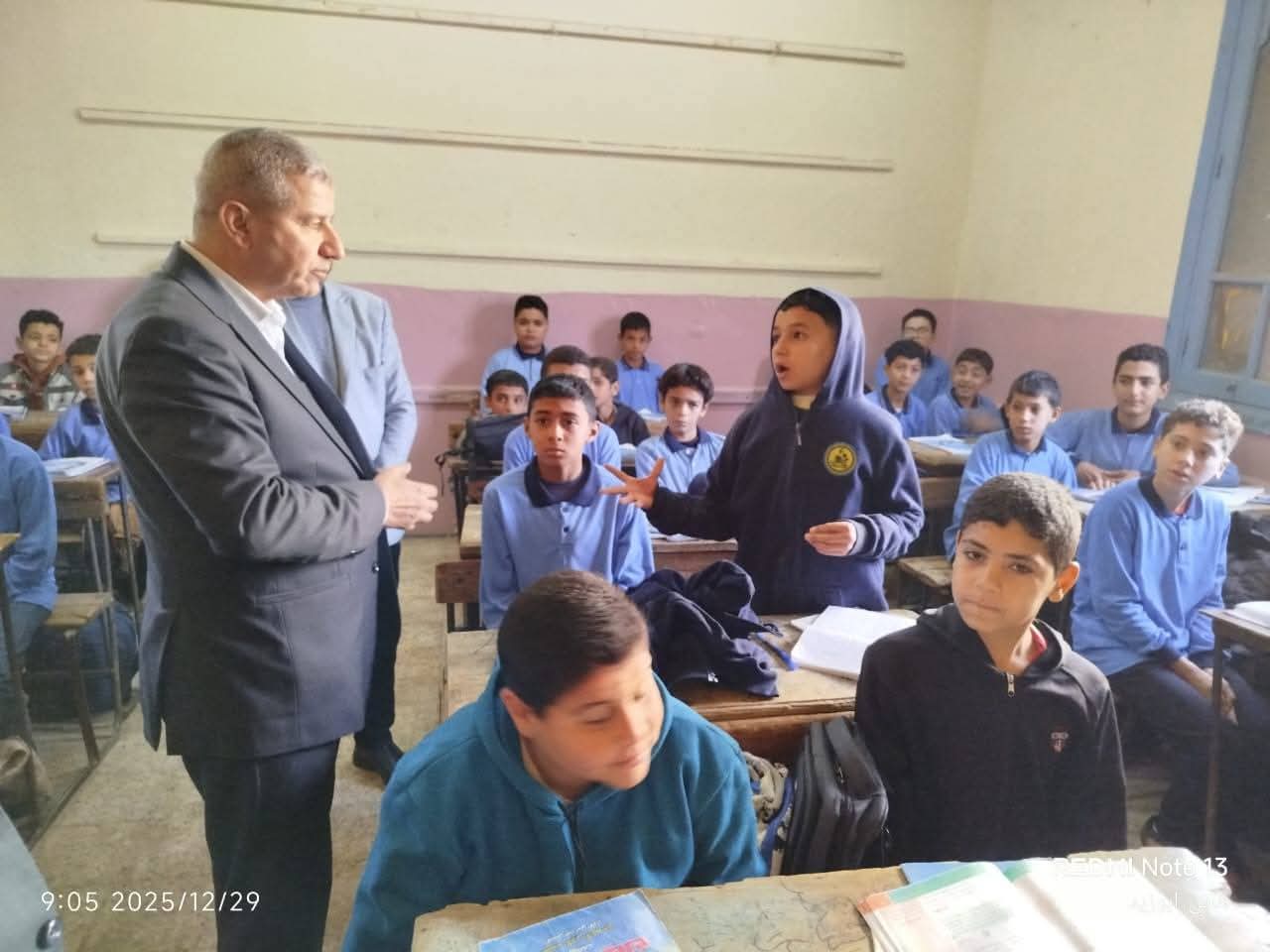 حيث تفقد مدرسة انشاص الرمل الاعدادية بنين للوقوف علي انضباط اليوم الدراسي