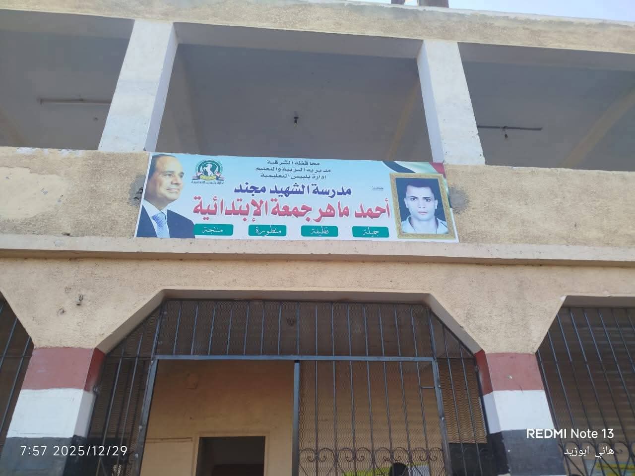 حيث تفقد سيادتةمدرسة الشهيد احمد ماهر جمعة الابتدائية للوقوف علي انضباط اليوم الدراسي
