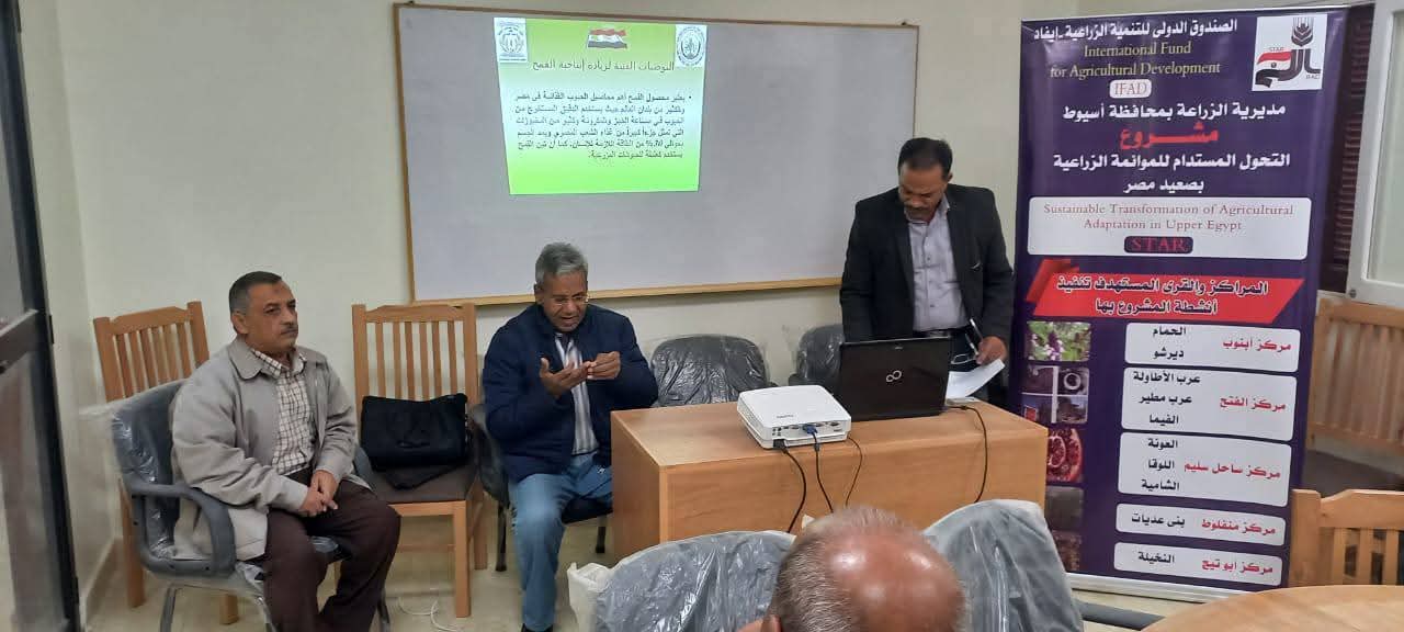وأوضح محافظ أسيوط أن مديرية الزراعة، برئاسة الدكتور عبد الرحيم أحمد وكيل وزارة الزراعة بأسيوط، نظمت ندوة إرشادية بعنوان "زراعة وإنتاج محصول القمح" بقرية عرب مطير التابعة لمركز الفتح، وذلك ضمن أنشطة الدعم الفني لمشروع التحول المستدام للمواءمة الزراعية في صعيد مصر.