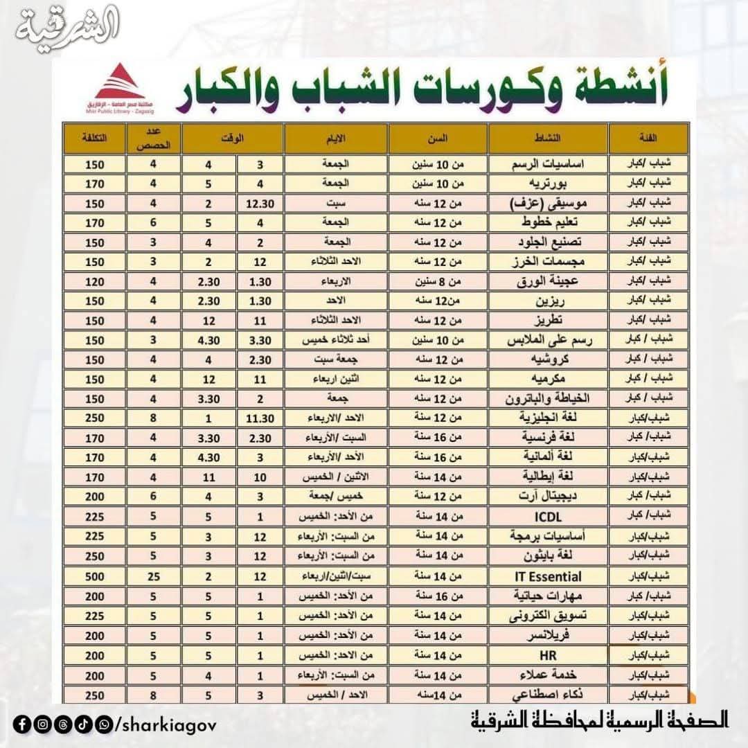 ومن جانبها أشارت رانيا حشيش مديرة مكتبة مصر العامة بالزقازيق إلى أن فريق عمل المكتبة سيقدم خلال أجازة نصف العام عدة أنشطة في أجواء ترفيهية وتعليمية مُحفّزة تنمّى المهارات وتصقل الإبداع وذلك طوال أيام الأسبوع فى المجالات الآتية:-