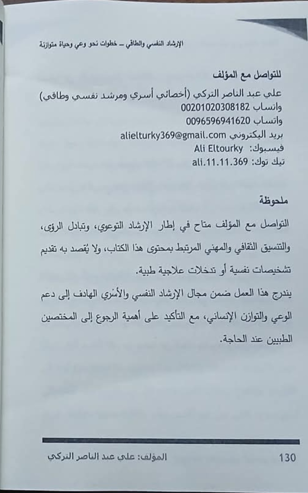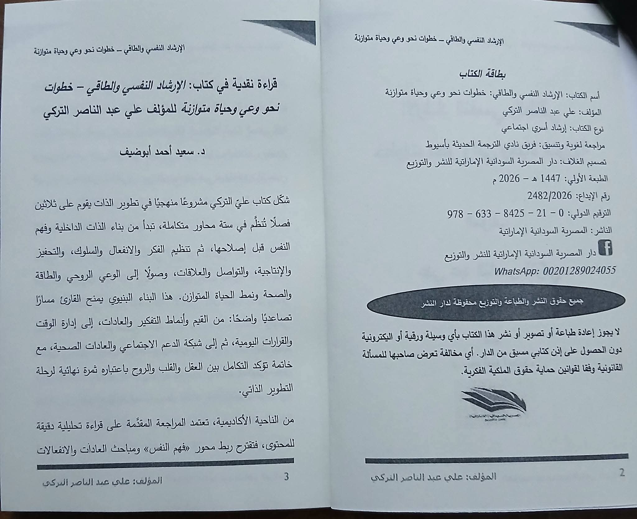 يعد كتاب "الإرشاد النفسي والطاقي – خطوات نحو وعي وحياة متوازنة" واحدا من الأعمال الفكرية المعاصرة التي تسعى الى تقديم رؤية انسانية عملية لفهم النفس وادارة الحياة من منظور يجمع بين الوعي النفسي والتوازن الداخلي.