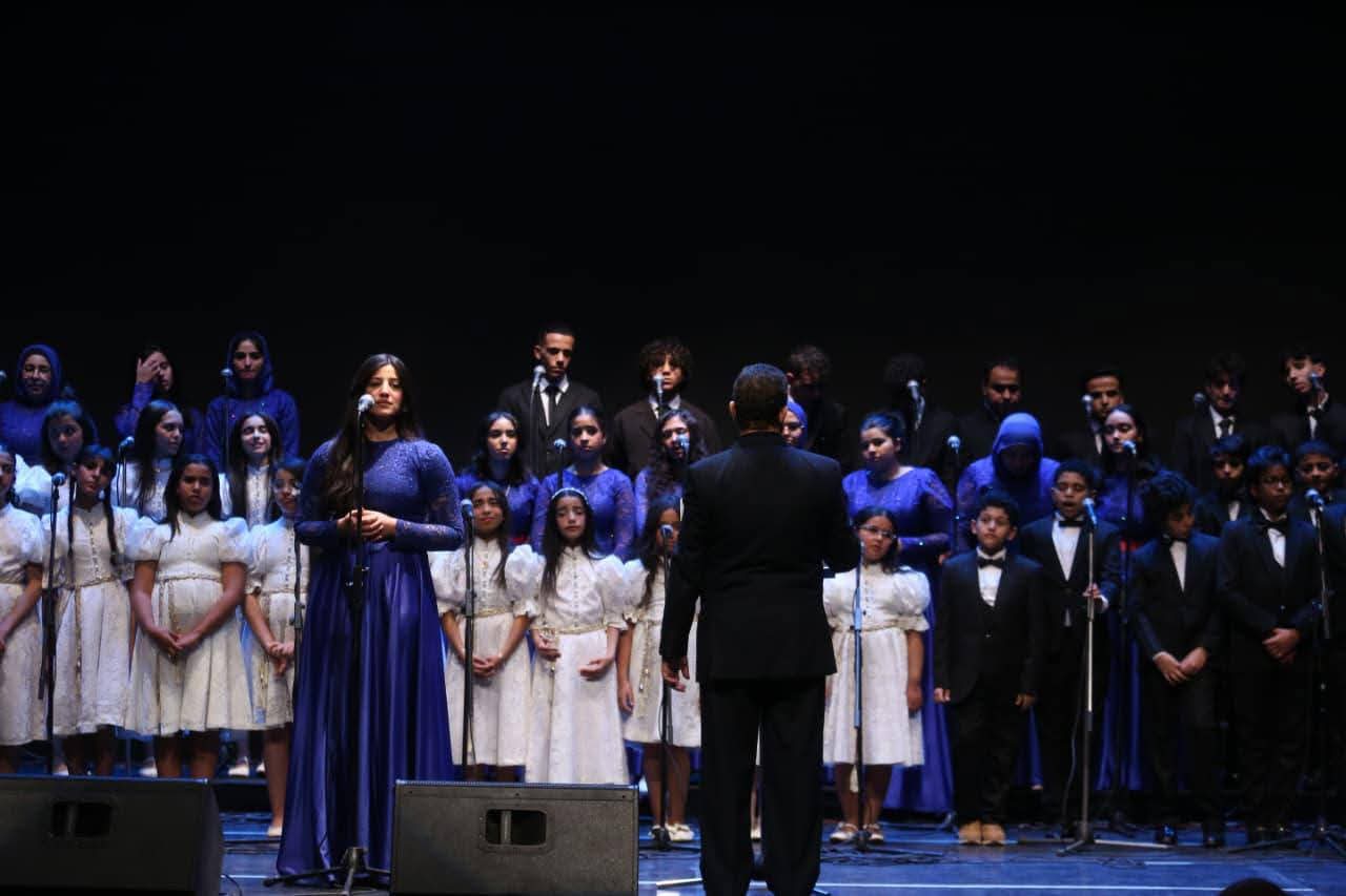 وعلى التوازى تحول المسرح الصغير إلى مساحة من الأمل تبشر بغدٍ فنى مشرق حيث عبر كورال أطفال وشباب مركز تنمية المواهب بقيادة مديره الفني الدكتور محمد عبد الستار عن خصوبة التربة الإبداعية المصرية من خلال أمسية تميزت بالحيوية والتجدد وتضمنت مجموعة مختارة من الأعمال التراثية والأناشيد الرمضانية الشهيرة التي تمتزج فيها روح الرجاء بجمال التراث كان منها ميدلى رمضان، قلبك حنين يا نبى، أم النبى، كم ناشد المختار ربه، رمضان فى مصر حاجة تانية، الرضا والنور، حبيب الله محمد، صل على سيدنا النبى، ولاد البلد، أكتر أكتر، تجلى مولد الهادى، من نورك يا رب، رمضان كريم، قمر سيدنا النبى، لاجل النبى، شهر الصيام، يا نبى سلام عليك، خشوع، مسك الختام يا نبى، محمد يا رسول الله، فيها حاجة حلوة .. أداها ببراعة فاروق محمد، رقية مصطفى، مريم محمد، محمد يسرى، ندى شريف، عمار هشام، لمار محمد، أحمد فايد، أيتن محمد، سيف عمرو، ملك عبد المنعم، محمد محمود، منة الله، أحمد وليد، سلوان، أبو بكر، شيماء ضاحى، أحمد فايد، حبيبة الشريف، ساندرا عماد .