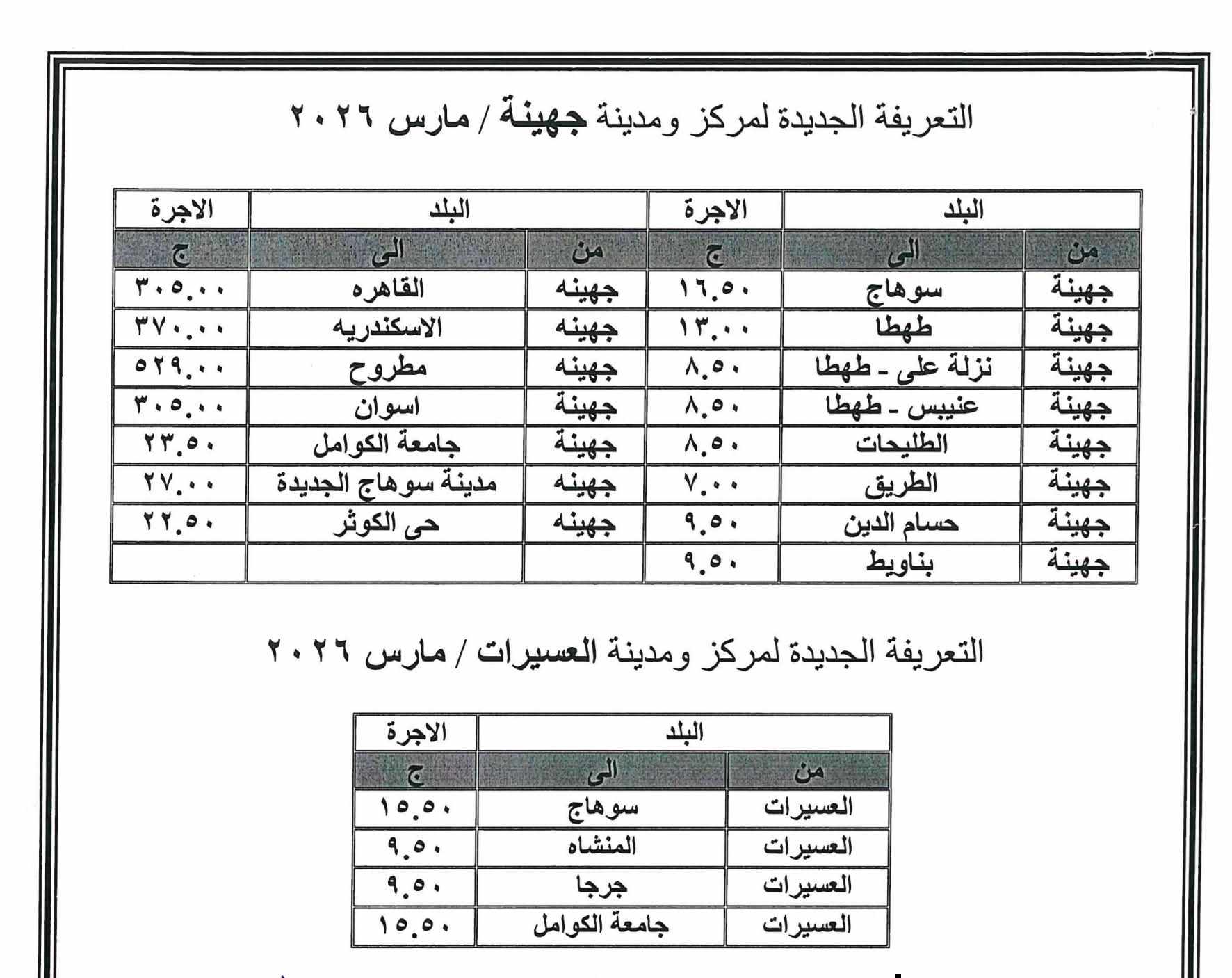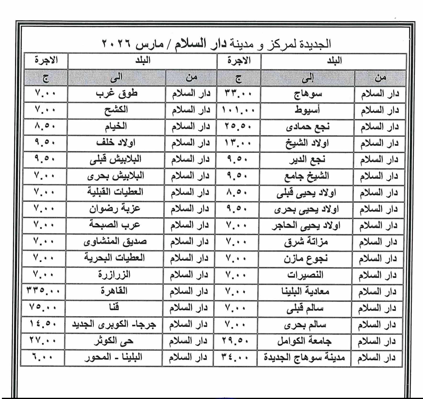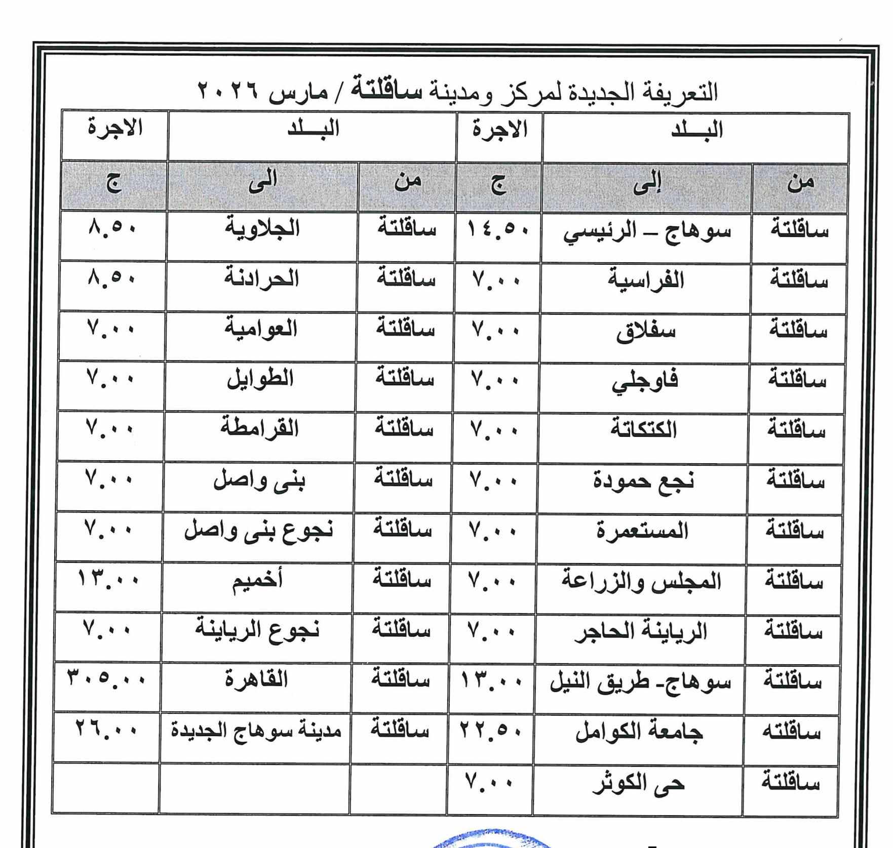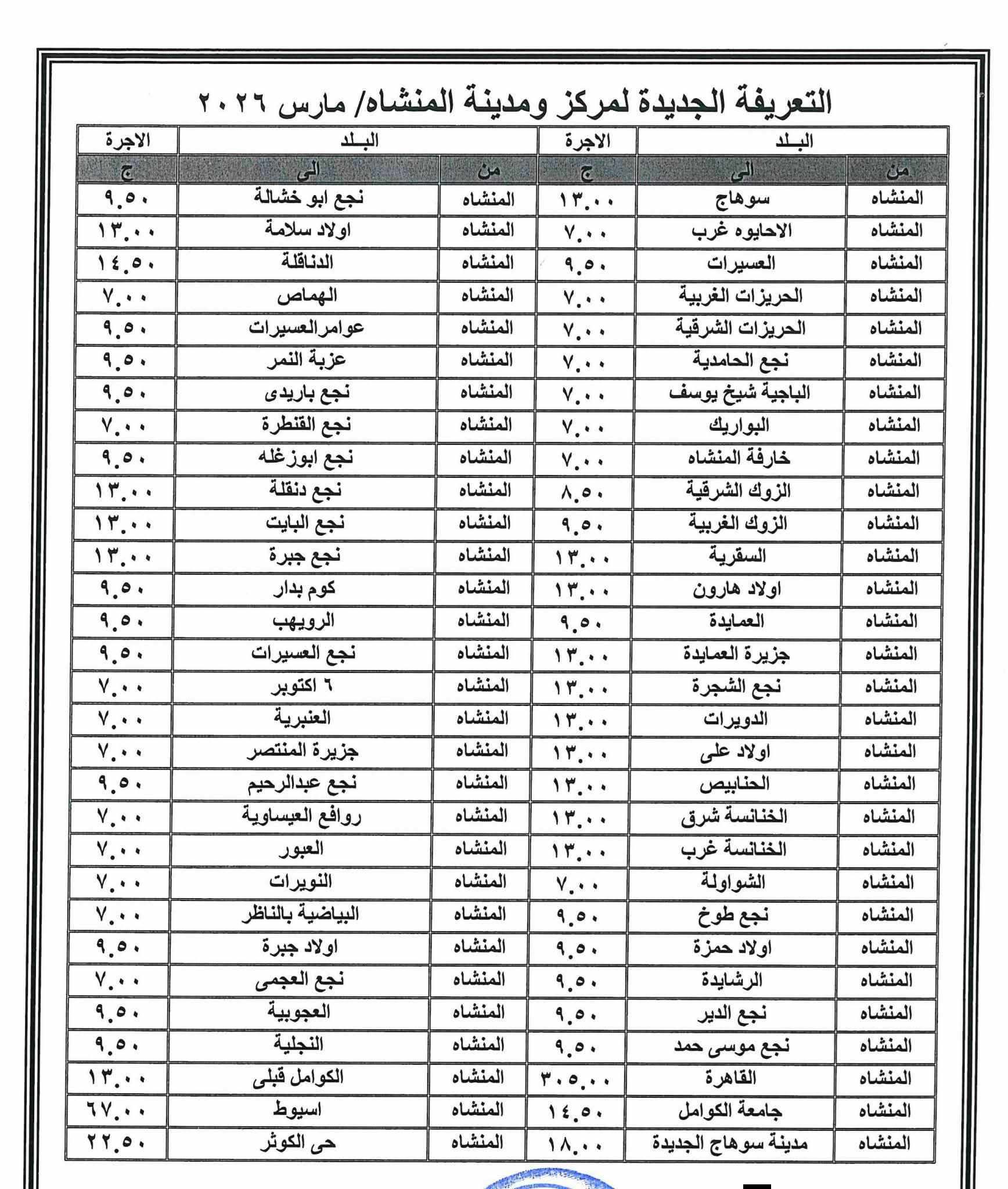 أصدر اللواء طارق راشد محافظ سوهاج، قرارا بشأن تعديل تعريفة الركوب لسيارات الأجرة العاملة بنطاق المحافظة، وذلك بعد قرار لجنة التسعير التلقائي لأسعار المنتجات البترولية بوزارة البترول وتحريك الأسعار لبعض المنتجات اعتبارًا من اليوم، في ظل الظروف الاستثنائية التي تمر بها اسواق الطاقة عالمياً.