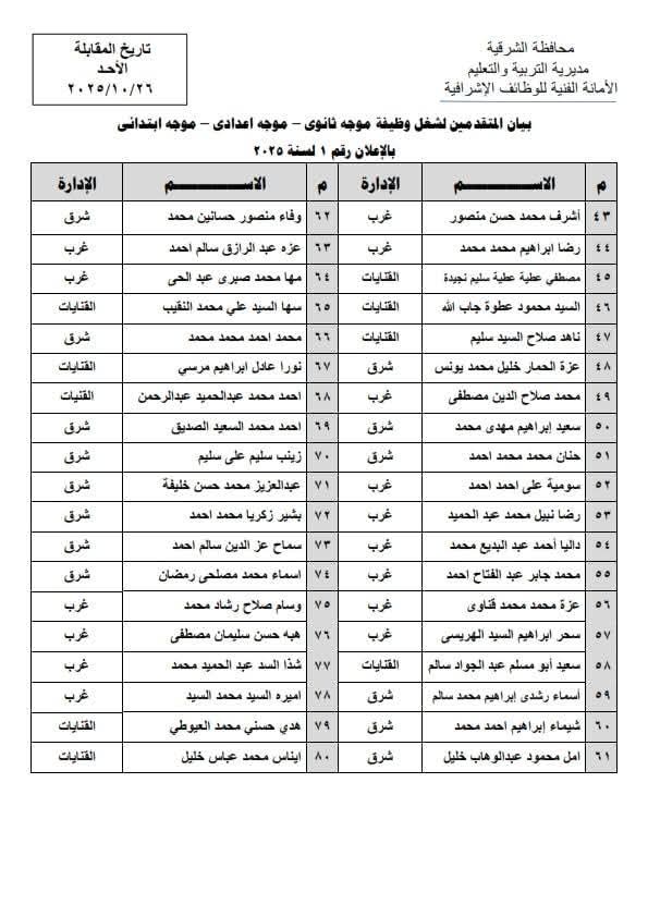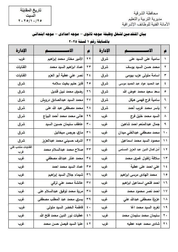 ' تعليم الشرقية '' غدا الأحـــد الموافق 26 أكتوبر 2025 اختبارات المتقدمين لشغل وظيفة موجة…