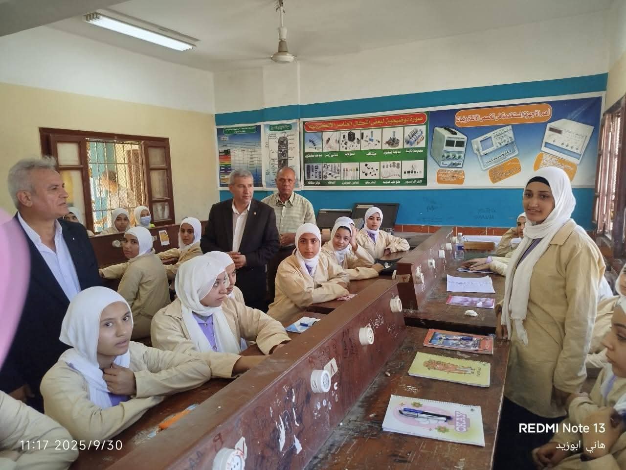 بتفقد مدرسة ابو كبير الثانوية الصناعية بنات للوقوف علي سير انتظام العملية التعليمية ويناقش الطالبات فيما تم دراسته من المناهج المقررة