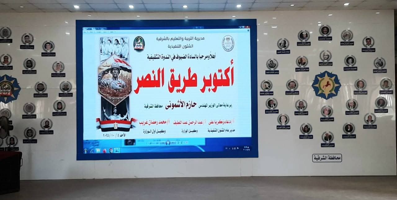 في بداية الندوة هنأ الاستاذ محمد رمضان وكيل اول الوزارة القيادة السياسية ومحافظ الشرقية والمستشار العسكري لمحافظة الشرقية بمناسبة الذكري 52 لانتصارات أكتوبر المجيدة .