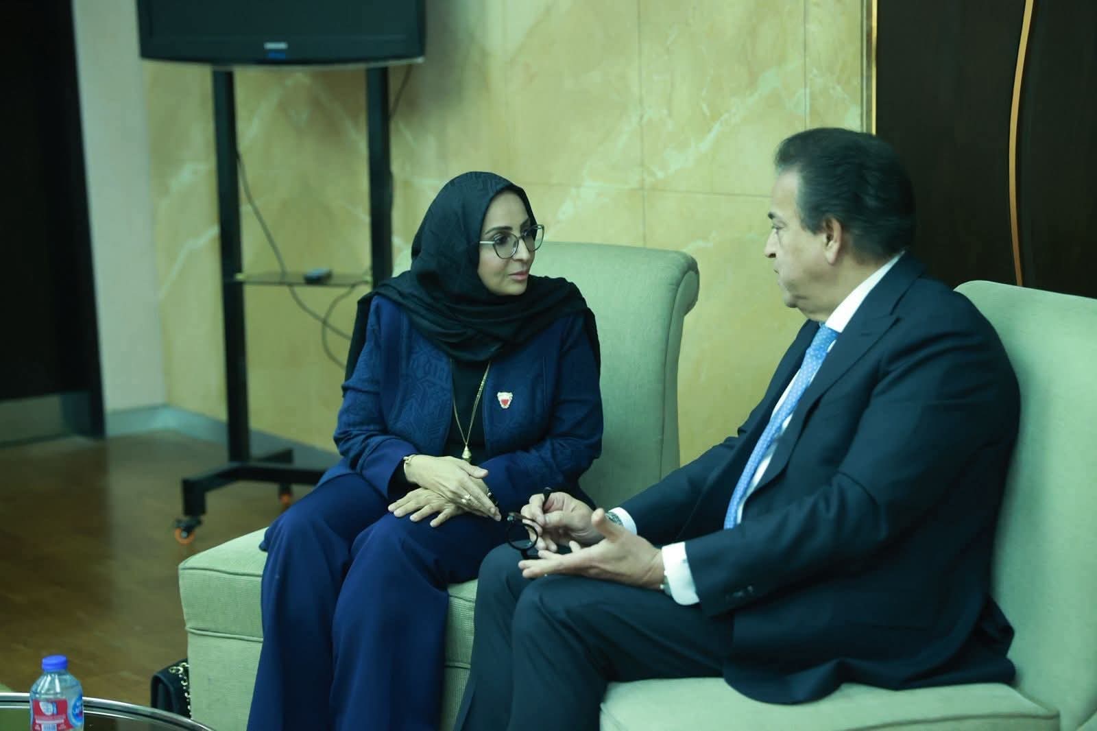 حضر اللقاء الدكتور محمد حساني، مساعد الوزير لشؤون ومبادرات الصحة العامة، والسفيرة فوزية بنت عبدالله، سفيرة مملكة البحرين لدى مصر.