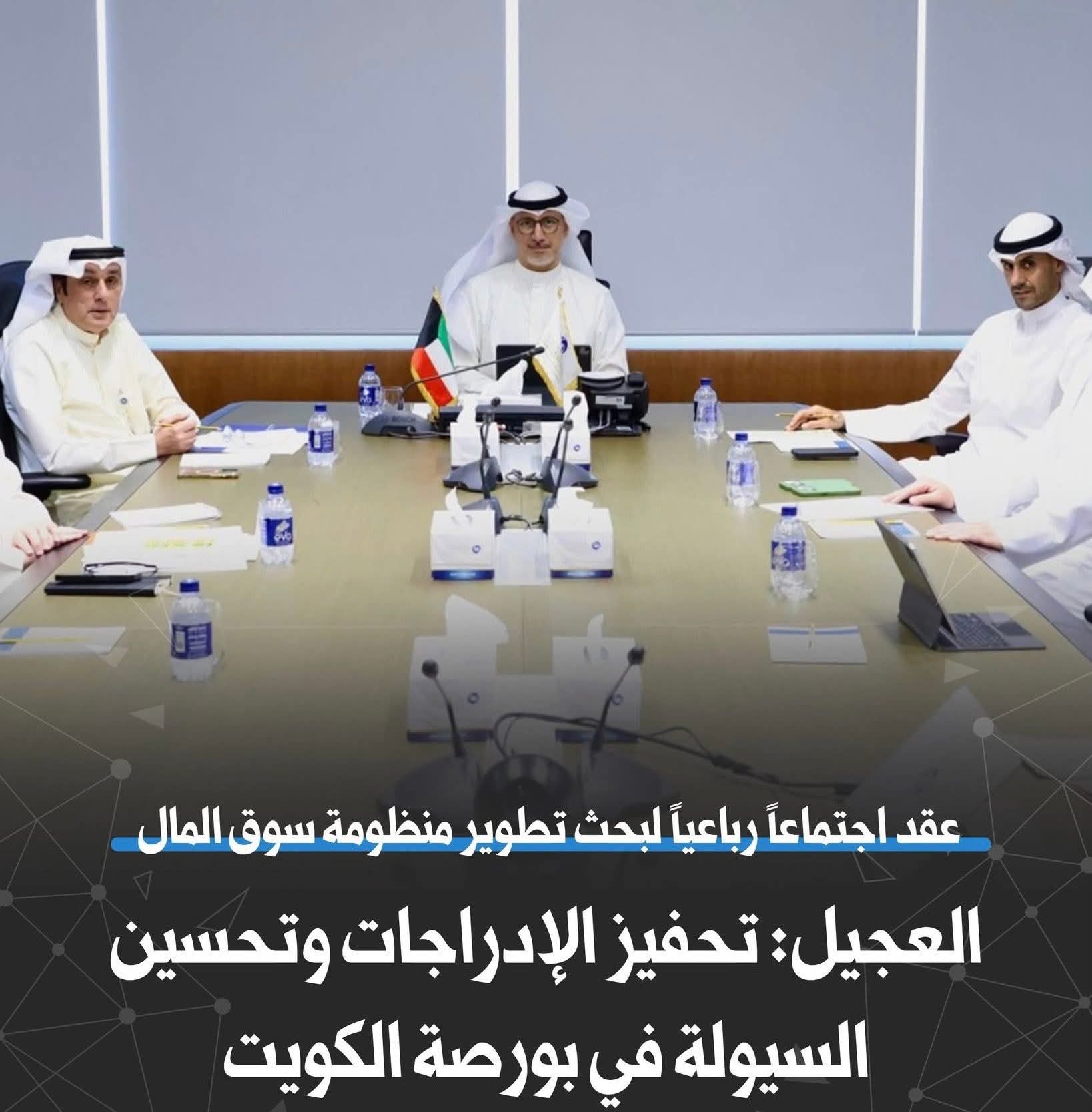 جاء ذلك خلال الاجتماع الذي عُقد الخميس الماضي في مقر هيئة الأسواق، بمشاركة كلٍّ من رئيس مجلس المفوضين في الهيئة عماد تيفوني، ورئيس مجلس إدارة بورصة الكويت بدر الخرافي، والرئيس التنفيذي للبورصة محمد العصيمي، ورئيس مجلس إدارة الشركة الكويتية للمقاصة فهد المخيزيم، حيث جرى بحث سُبل تحفيز الإدراجات الجديدة، وتحسين السيولة، وتبسيط الإجراءات، وتوسيع قاعدة المستثمرين، بما يتماشى مع توجهات الدولة في دعم القطاع الخاص وتمكينه من النمو.