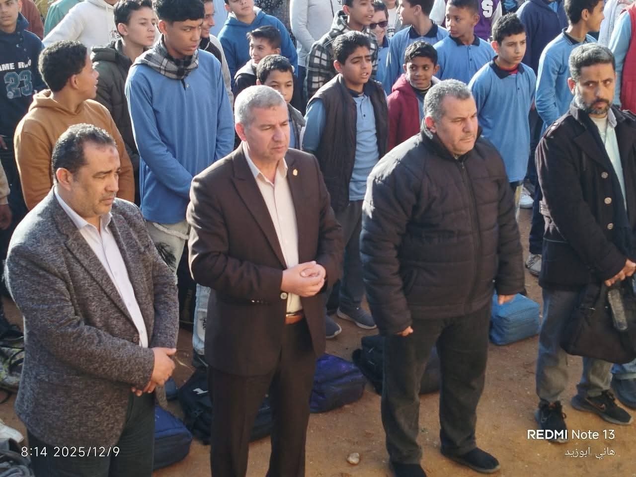 وشهد سيادته طابور الصباح وتأدية تحية العلم ووجه سيادته بان تكون التقييمات جزء ثابت من الحصة الأولي وجزء من الحصة الأخيرة علي مدار الأسبوع و بعدم تحصيل أي مبالغ مالية تحت أي مسمى مقابل تسجيل الاستمارة الإلكترونية للصف الثالث الإعدادي وفي حال احتياج الطالب للدعم أو المساعدة يتم تقديمها مجانًا بالكامل دون فرض أي رسوم
