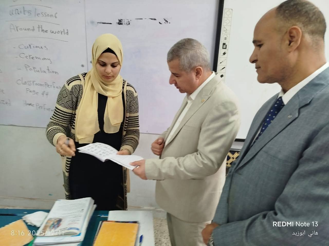 و تفقد سيادته فصول المدرسة واطمئن علي استلام الطلاب والطالبات للكتب الدراسية وتحديث قوائم الفصول وتسجيلها إلكترونيا ثم واصل سيادته تفقد فصول المدرسة لمتابعة سير العمل وانتظام الدراسة واطمئن علي التزام المعلمين بالتعليمات والقرارات الوزارية المنظمة لسير الدراسة ومتابعة موقف فك كثافات الطلاب والطالبات و متابعة العجز والزيادة في أعضاء هيئة التدريس و تطبيق القرارات المنظمة للتقييمات والواجبات المدرسية وكراسة الحصة