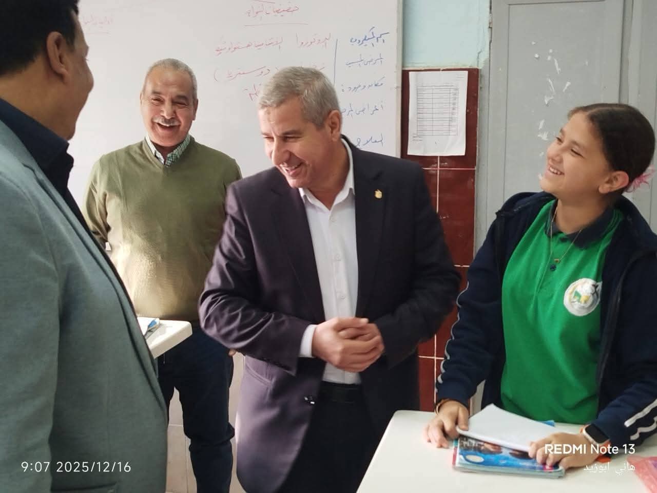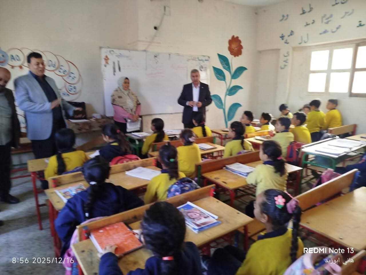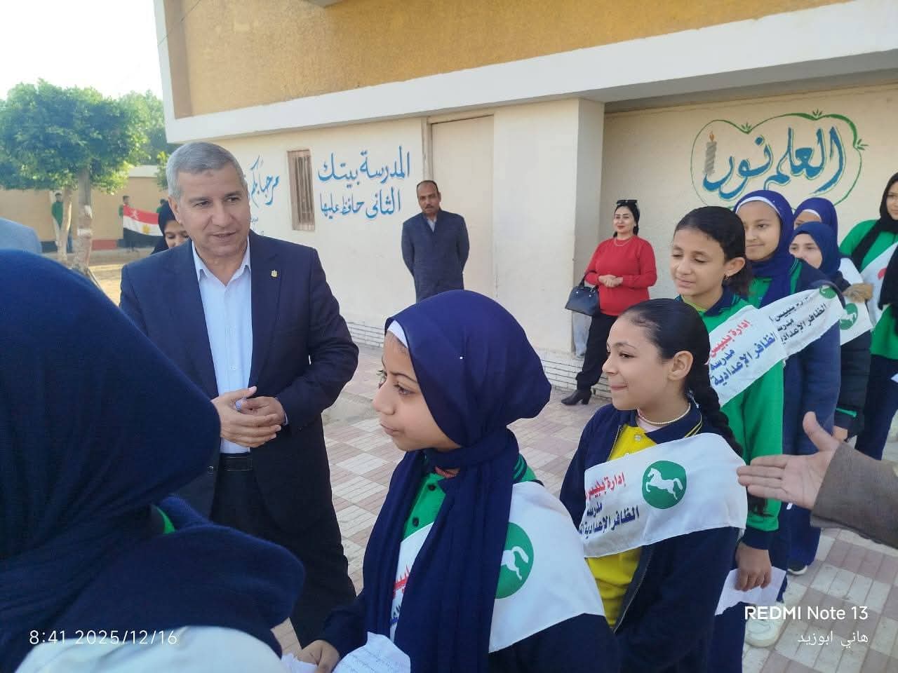 و تفقد سيادته فصول المدرسة واطمئن علي استلام الطلاب والطالبات للكتب الدراسية للمرحلة الابتدائية والمرحلة الاعدادية كما اطمئن علي تحديث قوائم الفصول وتسجيلها إلكترونيا ثم واصل سيادته تفقد فصول المدرسة لمتابعة سير العمل وانتظام الدراسة واطمئن علي التزام المعلمين بالتعليمات والقرارات الوزارية المنظمة لسير الدراسة ومتابعة موقف فك كثافات الطلاب والطالبات و متابعة العجز والزيادة في أعضاء هيئة التدريس و تطبيق القرارات المنظمة للتقييمات والواجبات المدرسية وكراسة الحصة