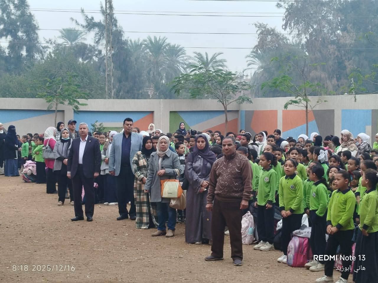 وشهد سيادته طابور الصباح وتأدية تحية العلم ووجه سيادته بان تكون التقييمات جزء ثابت من الحصة الأولي وجزء من الحصة الأخيرة علي مدار الأسبوع