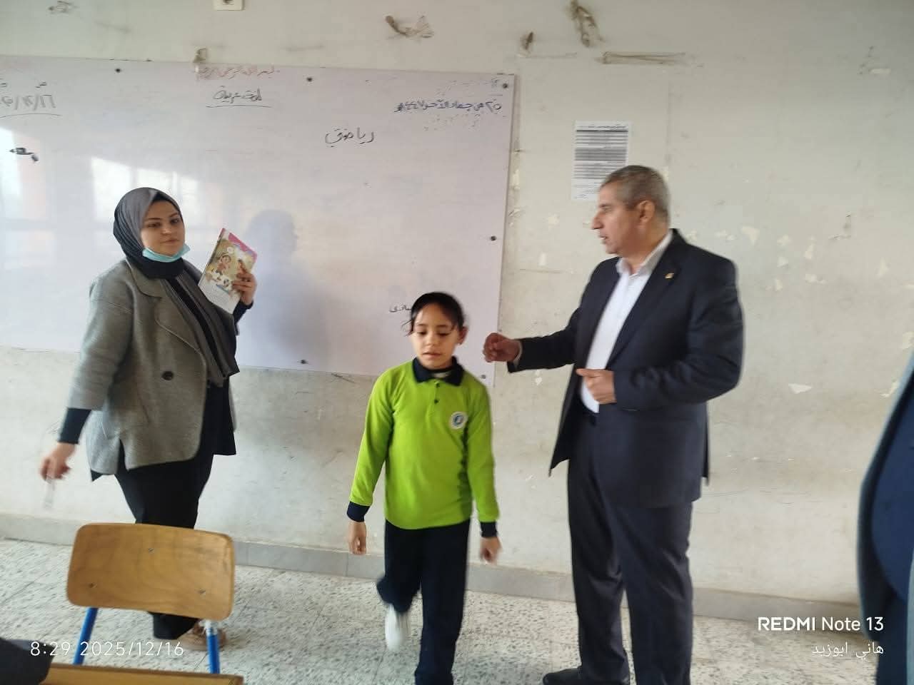 و تفقد سيادته فصول المدرسة واطمئن علي استلام الطلاب والطالبات للكتب الدراسية كما اطمئن علي تحديث قوائم الفصول وتسجيلها إلكترونيا ثم واصل سيادته تفقد فصول المدرسة لمتابعة سير العمل وانتظام الدراسة واطمئن علي التزام المعلمين بالتعليمات والقرارات الوزارية المنظمة لسير الدراسة ومتابعة موقف فك كثافات الطلاب والطالبات و متابعة العجز والزيادة في أعضاء هيئة التدريس و تطبيق القرارات المنظمة للتقييمات والواجبات المدرسية وكراسة الحصة