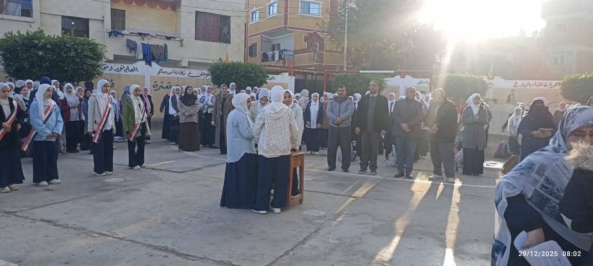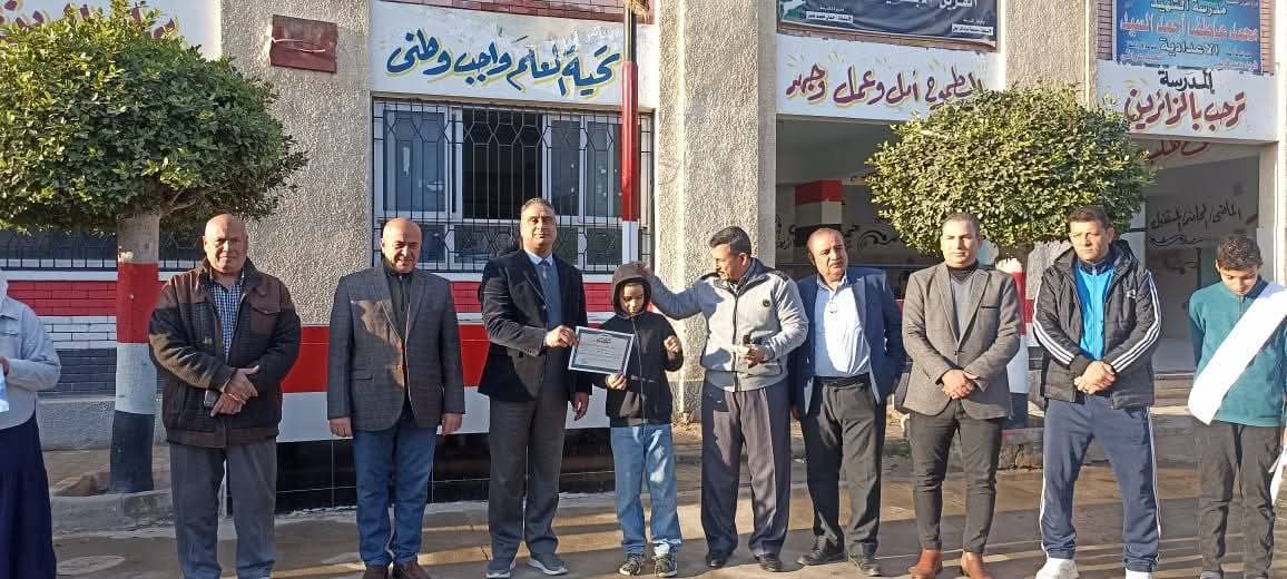 حيث شارك سيادتة تلاميذ مدرسة الشهيد محمد عاطف الاعدادية طابور الصباح وتأدية تحية العلم ويكرم الطلاب المتفوقين دراسيا ويشدد علي ان تكون التقييمات جزء ثابت من الحصة الأولي وجزء من الحصة الأخيرة علي مدار الأسبوع وعمل مراجعات عامة للمناهج الدراسية