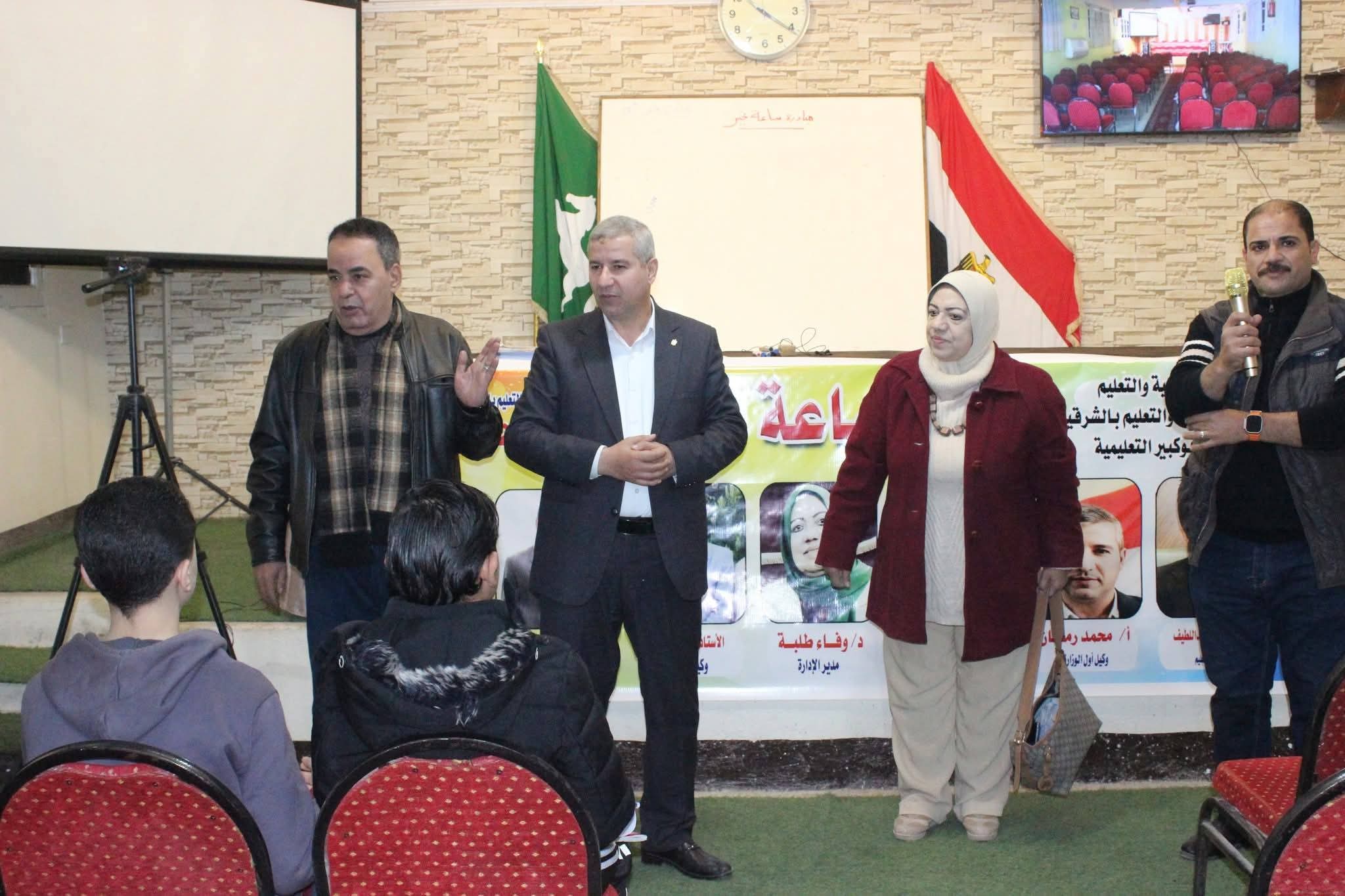 واشار الأستاذ محمد رمضان وكيل اول الوزارة في كلمته علي حرص مديرية التربية والتعليم بالشرقية علي مواصلة تفعيل مبادرة ساعة خير المجانية علي مستوي جميع الإدارات التعليمية لتوفير فرص متكافئة لجميع الطلاب في مختلف الإدارات التعليمية
