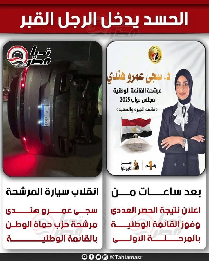 انقلاب سيارة النائبة د.سجي عمرو هندي مرشحة…